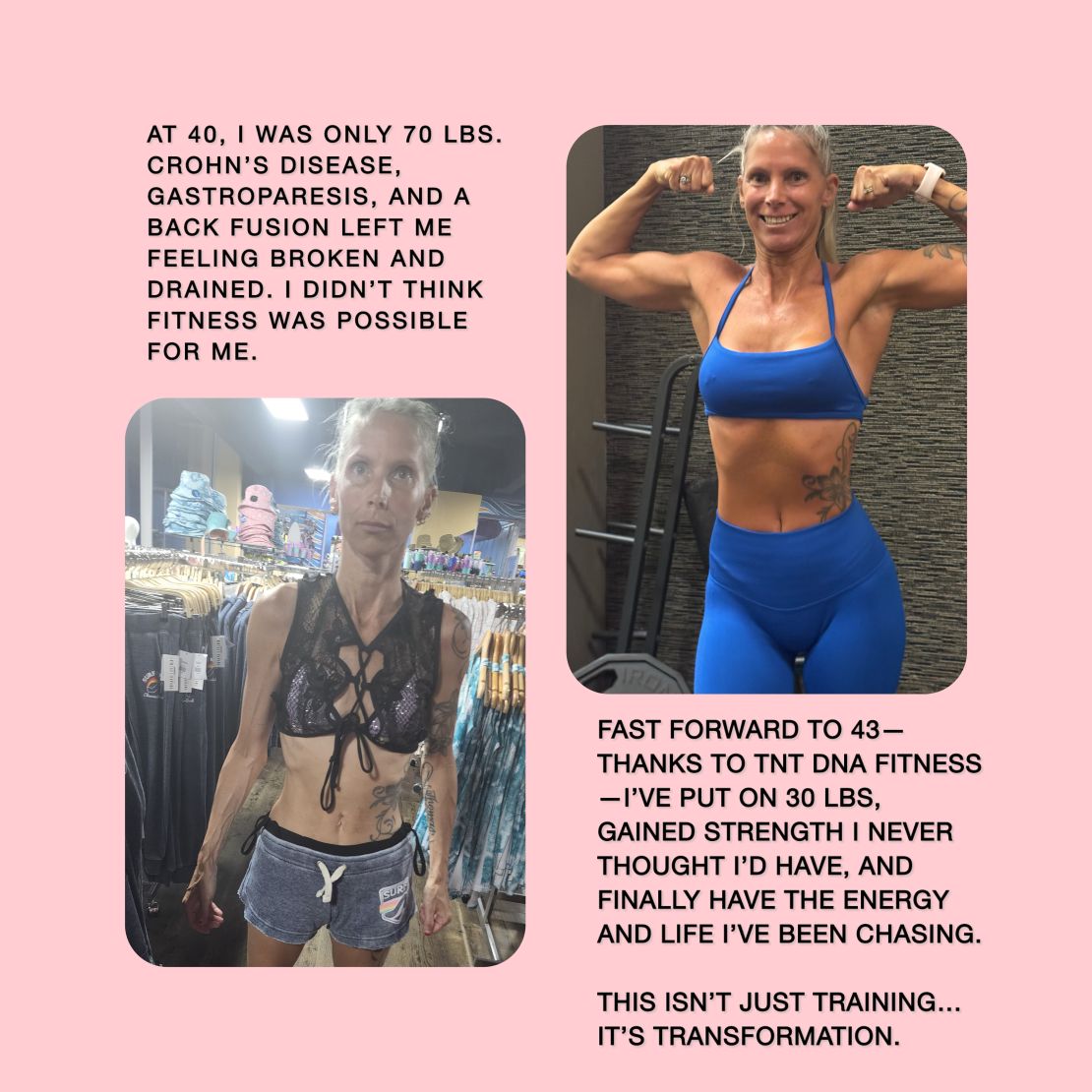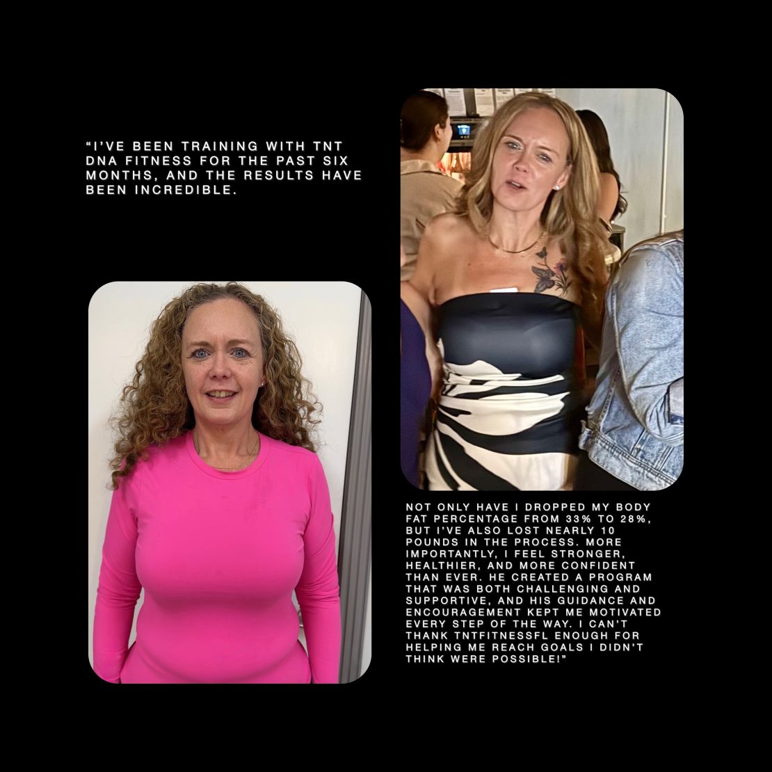 TNT DNA Fitness is dedicated to working with parents and adults over 30 who want more than another cookie-cutter program. Each plan is completely tailored to genetic strengths, metabolism, injury risk, recovery time, and ideal nutrition—so you get a custom blueprint designed for your real life and your real body, not someone else’s.